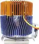 Поскольку поставки 4-х «пней», как правило, боксовые, а родные охладители из их комплекта весьма неплохо справляются с возложенными на них обязанностями, то популярность моделей кулеров для Pentium 4 от сторонних производителей невысока, и их редко встретишь в продаже. И все же они есть. Например, одним из ответвлений вулканической линии является модель под названием Volcano P4 (рис. 13). Этот образец вулканической продукции, как напрямую явствует из его названия, любит сидеть на четвертых «пнях» и усиленно их охлаждать, при этом совершенно не поедая любимые пирожки :-). Следующая модель —Aircooler TWAFR01 (рис. 14) — разработана еще во времена царствования первых персон семейства Intel Willamette, рассчитанных на посадку в Socket 423. Все, что может быть установлено в этот процессорный разъем, данный кулер окутает «родительским» холодом. Еще один красавчик из той же компании —INDIGO Orb (рис. 15).