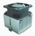 Кулер имеет алюминиевые ребра основного радиатора, над которыми высится вентилятор. Кстати, последний, 60 мм в диаметре, не охватывает воздухопотоком всех имеющихся ребер . Думаю, не надо комментировать, как это отражается на эффективности теплоотвода.