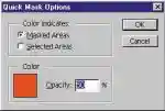 Еще одна хитрость. Если цвет маски близок к фоновому (например, красная маска и красный фон), то в опциях быстрой маски вы можете задать любой цвет.