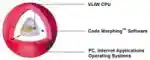 Однако у Crusoe многие операции по оптимизации исполняемого кода вынесены за пределы процессора и выполняются программно, в качестве спецпроцесса, по мере работы основных приложений. То, что часть функций центрального процессора вынесена за его пределы, вовсе не означает, что ядру их не нужно исполнять. VLIW (Very Long Instruction Word)-ядру придется делать все то же самое, что и процессорам от AMD и Intel (отвечать за ветвление, менять регистры и т. д.), но только без специально выделенных для этого логических схем. Другими словами, с частью того, что в процессорах x86 возложено на железо, процессоры от Transmeta справляются программно. Данный программный слой назвали Code Morphing Software. Технология Code Morphing заключается в том, что с помощью специального транслятора, расположенного в памяти, готовые программы транслируются из x86 кода в код VLIW. Он располагается в специально выделенном адресном пространстве, недоступном другим программам. Нетрудно догадаться, что передача части функций процессора софту замедляет систему в целом. Но Transmeta провела большую работу, чтобы свести потери к минимуму.
