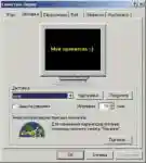 WM_PAINT — это сообщение происходит при перерисовке окна. Первыми 4 строками мы опять же узнаем разрешение экрана и высчитываем центр. Далее вызываем функцию BeginPaint(). Она подготавливает определенное окно для рисования (hWnd), заполняет структуру типа PAINTSTRUCT (ps) информацией о рисовании и возвращает в hDC указатель на контекст устройства, в нашем случае дисплея. В условном операторе определяем, находимся ли мы в режиме просмотра, или окно развернуто на полный экран; это можно проверить при помощи флага fChildPreview (true — просмотр). Если в режиме просмотра, то выводим текстовую строку «Мой хранитель :-)». Для этого сначала функцией SetBkColor() устанавливаем цвет фона для нашего контекста устройства (hDC), макрос RGB(r, g, b) преобразует интенсивность красного (r), зеленого (g) и желтого (b) цветов в тип COLORREF, переменную такого типа принимает в качестве второго параметра функция SetBkColor(). Аналогично функцией SetTextColor() устанавливаем цвет текста. Наконец, выводим строку szPreview при помощи TextOut() на дисплей. Она принимает в качестве параметров указатель контекста, координаты строки, саму строку и ее длину (вычисляем при помощи встроенной функции strlen()). У Вас должна получиться картинка, представленная на Рис. 3.