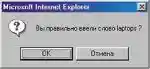 и сохраняем файл, например, как 1.html. При обращении через кнопку в браузере, данный скрипт откроет окно с командной строкой (рис. 1), и после того, как вы введете в нее, например, слово, инициализирует запрос: «Вы правильно ввели слово?» (рис. 2). Если вы нажмете «Да», то скрипт произведет запрос по указанному вами URL-адресу и откроет новое окно с результатом поиска. Если укажите «Нет», то окно закроется и скрипт прекратит свою работу.