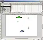 Таким же образом создаем пушку (вытянутый по горизонтали прямоугольник), называем ее cannon. Дуло для пушки (назовите символ cannon_barrel) и для тарелки (plate_barrel) изобразите в виде вертикальных прямоугольников. Не забывайте: для каждого из этих игровых объектов мы создаем новый символ (Insert > New Symbol). Затем создайте снаряды, которыми будет стрелять тарелка и пушка (это тоже отдельные символы), и назовите их соответственно plate_shell и cannon_shell. Нарисуйте их в виде маленьких прямоугольников или кругов. Для начала этого хватит (Рис. 1).