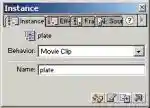 Символы, находящиеся в основном ролике, называются экземплярами (instance). В одном ролике может быть несколько экземпляров одного и того же символа. Этим экземплярам нужно дать имена (поле Name на закладке Instance на вспомогательной панели; по умолчанию эта закладка находится слева на нижней панели). Для удобства имена экземплярам дайте те же, что и самим символам (Рис. 3).
