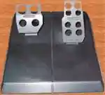 Площадка педалей имеет небольшие габариты, при этом благодаря кусочкам резины, приклеенным снизу, она довольно устойчива даже на паркете. Сами педали состоят из рычагов и пластин, покрытых серебристым напылением (что придает им большую реалистичность). Как мне показалось, возвратные пружины более мягкие, чем хотелось бы. Недостаточная площадь подставки потребует некоторого времени, чтобы освоиться. Блок педалей подключается к корпусу руля при помощи кабеля.