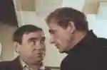 Еще один новогодний фильм, который мы все хорошо знаем, «Чародеи» (рис. 4) снимался режиссером К.Бромбергом в бесконечных коридорах Останкино. Именно из этих лабиринтов никак не мог найти выход Гость с Юга. Несмотря на то, что Семен Фарада, сыгравший этого героя, произносит в течение фильма всего лишь несколько фраз, его роль значит ничуть не меньше всех остальных. А кто же не знает его знаменитого: «Ну кто так строит!»? А ведь изначально актер не хотел сниматься в фильме и уговорил его Валентин Гафт (). У всех актеров после «Чародеев» остались незабываемые воспоминания. Эммануил Виторган, например, не может простить Михаилу Светину (рис. 5) того, что дубль сцены, где Фома Остапович Брыль катается на Коврове, снимался несчетное количество раз ().