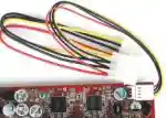 Переходим к тяжелой артиллерии. PowerColor Radeon 9500 Evil Commando X (рис. 3), как и все оставшиеся видеокарты, поставляется в такой же массивной коробке, как и Radeon 9000Pro. В комплект входит видеокарта в кулечке, печатное руководство, компакт с драйверами, диск с программой InterVideo WinDVD 4, англоязычная bundle-версия игры Rune плюс набор проводов и переходников (DVI-to-VGA-переходник, A/V-кабель, S-Video-кабель, S-Video-to-A/V-переходник). Карта выполнена на плате из красного текстолита. Четыре микросхемы 64 Мб DDR-памяти Hynix со временем выборки 3.6 наносекунд расположены в верхней части платы, по две с каждой стороны. Система охлаждения чипа — черный кулер с широким радиатором (рис. 4). Частоты чипа/памяти 277/270 (540) МГц (чип получил прибавку в 2 МГц от рекомендованных показателей). Начиная с этой модели (если рассматривать модельный ряд с точки зрения производительности графических чипов), на картах распаян разъем для подключения дополнительного питания от стандартного блока питания корпуса ПК (соответствующий кабель прилагается в поставке) (рис. 5). Режимы работы с шиной AGP — до 8Х.