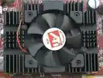 Самая младшая модель в нашем обзоре — карта PowerColor Radeon 9000 Evil Commando (рис. 1). Она поставляется в небольшой slim-коробочке, которая, впрочем, наполнена довольно-таки неплохо как для устройств такого уровня. Кроме платы в полиэтиленовом кулечке, печатного мануала и диска с драйверами в упаковке обнаружился A/V-кабель (композитный). Мелочь, а приятно. Видеокарта представляет собой плату из зеленого текстолита, оснащенную четырьмя микросхемами DDR-памяти производства Hynix со временем выборки 4 наносекунды общим объемом 64 Мб. Графический чип закрыт только серебристым радиатором высотой ~1 см без дополнительного активного охлаждения, что наверняка обрадует любителей тихих ПК. По сведениям PowerStrip, ядро работает на частоте 250 МГц, в то время как память функционирует всего лишь на 185 (370) МГц (напомним, что для 4-нс памяти верхний предел по частоте равен 250 МГц (1000/n, где n — время выборки в наносекундах)). Задняя панель оснащена богато: кроме стандартного VGA-выхода имеются выходы DVI и S-Video, так что полноценная работа с двумя дисплеями доступна даже на самой слабой карточке из двух новых линеек ATI. Режимы работы с AGP-шиной — до 4Х.