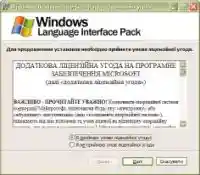 Прослушав на протяжении получаса арию натужно шипящего модема, мы наконец получаем в свое распоряжение долгожданный Ukrainian Interface Language Pack. Эту замечательную программу мы незамедлительно запускаем (на правах администратора!) и с умилением перечитываем появившееся на мониторе дополнительное лицензионное соглашение, составленное на чистейшем украинском языке (Рис. 2).