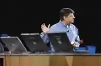 После Патрика на сцену поднялся знаменитый доктор Fish’n Chips, как его представили в данной презентации, а именно Крейг Барретт (Craig Barrett), главный исполнительный директор (CEO — Chief Executive Officer) корпорации Intel. Почему Fish’n Chips? По поводу Chips объяснять, наверное, не нужно, какой почитатель компьютерной техники не знает, чем знаменита компания Intel в первую очередь. Что же касается Fish, тут тоже все просто — просто любимым занятием Крейга является рыбная ловля.
