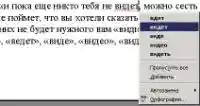 То же самое касается глагола «видеть». Если, скажем, сделать ошибку во фразе «и пока еще никто тебя не видет, можно сесть на поезд», программа даже не поймет, что вы хотели сказать. Она предложит уйму вариантов (рис. 1), но среди них не будет нужного вам «видит». Взамен можно увидеть слова «вдет», «ведет», «виде», «видео», «видеть». Особенно нас рассмешил вариант «ведет», который при вставке в данное предложение придает ему неповторимый колорит :-).