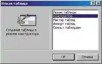 Добавить в проект новую таблицу тоже не проблема. Пожалуй, воспользуемся конструктором. Остальные способы создания таблиц, представленные в списке, нам не подойдут (Рис. 2).