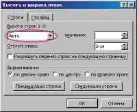 Импортированная таким образом в Word таблица отображается несколько странно: данные как бы усекаются. Устранить проблему можно изменением свойств таблицы. Таблицу необходимо выделить, а затем для пункта меню Таблица > Высота и ширина ячейки... вкладки Строка указать автоматическую высоту строк (Рис. 6).
