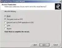 7. Появится окно установки разрешений (Рис. 8). В первой статье я рассказывал, для чего нужны переключатели Read, Run Scripts и Execute. Отмечу, что переключатель Write позволяет писать в заданный каталог, а Browse — это то же самое, что и Разрешить просмотр каталога в Personal Web Server.