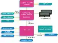 Случилось то, что случилось, — свет увидели два варианта чипсетов от Intel, 855GM и 855PM. Об их отличиях несложно догадаться по названиям — i855GM в своем составе содержит интегрированное графическое ядро Intel Extreme Graphics 2, а i855РM нацелен на работу с внешней видеокартой. Наборы системной логики, как обычно, состоят из северного (MCH — Memory Controller Hub) и южного мостов (ICH4-M — Interface Controller Hub). Роль северных мостов играют микросхемы 82855GM или 82855РМ, а южного в обоих случаях 82801DBM.