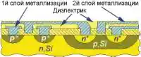 Даже самая совершенная технология без правильного и надежного соединения отдельных элементов в единую схему останется всего лишь теорией :-). Именно металлизация — процесс получения на поверхности кристалла определенной конфигурации проводящих дорожек и контактных площадок — поможет вам воплотить ваши знания в жизнь. Первые служат для связи различных областей (элементов) кристалла в единую электрическую схему. Контактные же площадки применяются для соединения кристалла с выводами корпуса и контроля электрических параметров перед окончательной сборкой микросхемы.
