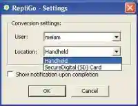 Settings приведет нас к окну настроек программы-конвертора (Рис. 2). В списке User можно выбрать пользователя, в чью учетную запись будет производиться синхронизация документов; в списке Location указывается, куда именно они будут устанавливаться — во внутреннюю память устройства или на карточки памяти (естественно, если ваш КПК поддерживает работу с ними); если поставить галочку напротив надписи Show notification upon completion, вы будете получать сообщение от программы об успешной «печати» каждого документа в память вашего цифрового помощника.