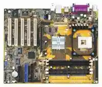 Плата поддерживает процессоры с 400- и 533-МГц шиной, имеет 6 PCI-слотов, поддерживает Pentium 4 с частотой свыше 3 ГГц и технологией Hyper-Threading (!). В отличие от чипсета SIS 645DX, плата работает с памятью DDR 400 :-). Однако если вас давит жаба раскошеливаться на такую память, не стоит расстраиваться, — плата оснащена 2 слотами для DDR-памяти и двумя — для обычной PC 133 SDRAM. Однако использование обычной SDRAM на платах такого уровня чревато серьезной потерей производительности, в чем мы убедимся далее, по ходу тестов. Так что жлобское решение :-) в данном случае не оптимально, особенно с учетом последнего поползновения вверх цен на PC 133 SDRAM. Но в случае экономного апгрейда решение установить SDR-память, несомненно, оптимально — оно позволяет поюзать старую оперативку, пока не накопятся средства на «приличную» DDR.