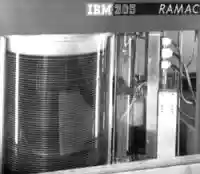 Во второй половине 50-х остро встал вопрос об удобстве хранения исходных данных и результатов машинных вычислений. Решением данной проблемы занялись инженеры IBM, в 1957 году они создали дисковую накопительную систему с произвольной выборкой RAMAC 305 (Random Access Method of Accounting and Control, рис. 18). Вскоре система, обеспечившая компьютеры возможностью хранить очень большие объемы информации и при этом быстро извлекать нужные данные, стала неотъемлемым компонентом всех ЭВМ. Фактически она явилась предком всех нынешних дисковых накопителей.