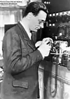 «Умы» Европы тоже не дремали. Огромный вклад в развитие вычислительной техники внес немецкий инженер Конрад Цузе (рис. 4). Насколько неординарной личностью был Конрад говорит то, что еще учась в школе он создал машину для размена денег (!). А став студентом технического вуза, Конрад вплотную занялся работами над универсальной вычислительной машины, программируемой и способной решать задачи любого уровня сложности. В домашних условиях (!) Цузе была собрана его первая электромеханическая машина Z1. Произошло это в 1938 году. Аппарат имел клавиатуру для ввода задач и панель с лампочками, на которой высвечивался результат. Затем Цузе задумал осуществлять ввод данных с перфоленты. Причем ленту он изготавливал самостоятельно из 35-миллиметровой фотопленки (рис. 5). Новая машина, в которой была воплощена новая задумка, получила название Z2 (рис. 6).