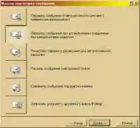 Ну и, конечно же, Мастер подготовки сообщений (рис. 8) и ранее упомянутое окно Передать сообщение (рис. 9). Они оба вызываются из панели кнопок. При работе с ними вам следует открыть нужный документ кнопкой с изображением папки. После в Мастере появится окно с выбором параметров посылки (рис. 10). Самые нужные из них находятся в окне Передать сообщение. Так что, чем пользоваться, особого значения не имеет — решайте сами.