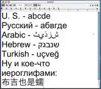 А вот мультиязычность в MacOS X реализована почти идеально. Система полностью юникодовая: в одном документе, набранном даже в самом простом текстовом редакторе, позволяется использовать символы различных кодировок — кириллицу, математические знаки, китайские и японские иероглифы, арабскую вязь и пр. (Рис. 4). Ввод символов работает в обоих направлениях — как традиционным для нас способом, слева направо, так и принятым во многих азиатских странах, справа налево. А обладателям графических планшетов доступны функции встроенного в систему ПО InkWell, отвечающего за