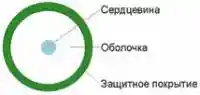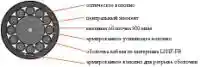 Обычно оптоволоконный кабель состоит из нескольких волокон, расположенных по кругу или в одной плоскости (рис. 10). Одна из возможных схем, предназначенная для внешней прокладки, изображена на рисунке 11. Здесь отдельные оптические волокна расположены симметрично по кругу, в центре кабеля проходит стальной или кевларовый трос. Снаружи кабель защищен стальной оплеткой и эластическим покрытием, а внутренняя полость заполняется гидрофобным гелем.