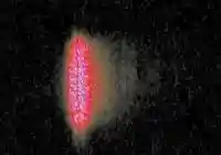 Кроме модовой дисперсии, ограничения на оптоволокно накладываются материальной дисперсией, вызванной разным углом отражения света различных длин волн. Так, длинноволновые красные лучи отклоняются меньше, чем коротковолновые синие. Применяемые же для передачи данных по оптоволокну источники света не способны излучать свет конкретной длины, а лишь выдают определенный диапазон волн. Даже полупроводниковый лазер (рис. 12) излучает свет (рис. 13) в интервале длин волн в несколько нанометров (рис. 14), более же дешевые светодиоды и вовсе имеют полосу шириной в 30–40 нм.