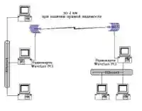 Но, пожалуй, наибольший интерес, сообразно теме статьи, представляют локальные сети, построенные на основе радиотехнологий (того же RadioEthernet, к примеру). В таких сетях уже используются более мощные передатчики, работающие в основном на частотах, свободных от лицензирования. При этом они также обеспечивают вполне приличную скорость, исчисляемую десятками мегабит в секунду (рис. 15).