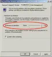 По умолчанию в конфигурации Аппаратное ускорение видео карты (Graphics Hardware Acceleration) и DirectX отключены для обеспечения максимального быстродействия и стабильности системы. Чтобы иметь возможность запускать игры, эти функции необходимо активизировать. Аппаратное ускорение включается следующим образом: Properties > Settings > Advanced > Troubleshoot. Передвигаем ползунок Hardware acceleration на отметку Full и нажимаем ОК (рис. 10).