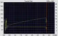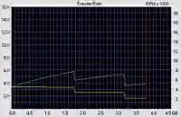 График чтения LG GCC-4480B (рис. 9) демонстрирует затруднение драйва в двух местах, где он немного сбрасывал скорость. По мере приближения к внешней кромке диска скорость чтения составила 4х (примерно с такой и начиналось чтение), а среднее значение 4.65х. Не очень быстро, но без особых рывков и напрягов препятствие было преодолено.