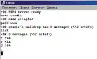 +OK CommuniGate Pro POP3 Server 3.5.9 ready // ответ сервера — сервер готов. user cosmic // ввод имени пользователя… +OK please send the PASS // ответ сервера — пользователь существует на сервере, введите пароль. pass xxxx // ввод вашего пароля… +OK 3 messages (513 bytes) // ответ сервера — пароль распознан, почтовый ящик пользователя содержит N сообщений (M байт). list // команда, выводящая список сообщений по номерам и размерам. +OK 3 messages // ответ сервера и вывод списка сообщений 1 155 2 164 3 194 . retr 1 // прочитать сообщение под номером 1… +OK 155 bytes // ответ сервера — ОК, 155 байт — и последующий вывод сообщения Return-Path: Received: from server.com [127.0.0.1] by mail.zp.ua [127.0.0.1] with ESMTP; Thu 08 Aug 2002 16:12:59 +0300 Hello, Cosmic! I glad to see you! Bye! . quit // покинуть сервер… +OK POP3 server singing off // ответ сервера — ОК, вышли…