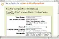 Оставался единственный путь разрешить недоразумение. По опыту предыдущего заказа я поняла, что нужно стучаться в службу поддержки. Адреса, по которому можно было бы направить свои вопросы, в письме от «Амазона» отсутствовал, поэтому я решила поискать его на их сайте. Для этого я зашла на свой аккаунт и кликнула по ссылке Help. Дальнейший путь пролегал в следующем направлении: Contact Customer Service > Order&Refund Questions > I have a question about ordering that’s not listed above в разделе Questions About Orders You’ve Already Placed. После такого небольшого путешествия по дебрям ссылок можно наблюдать форму (рис. 5), позволяющую отправить письмо в службу поддержки. В ней необходимо указать ваши имя, фамилию и адрес (хотя они обычно уже установлены, поскольку «Амазон» вас «узнает»), номер заказа, выбрать тему сообщения (я указала Other Questions And Comments — она подходит больше всего :-)) и написать письмо. Вот что я написала: «Я сделала у вас заказ два месяца назад. С тех пор два раза получала от вас письма, в которых вы сообщали, что отправка моего заказа отсрочена. Я одобряла эти отсрочки, потому что не хочу аннулировать заказ, мне он действительно нужен. Но хотелось бы знать причину отсрочки. Почему вы не можете отправить заказ? У вас нет этого диска в данный момент