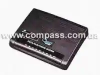 Факс-модем с полной реализацией голосовых функций Voice, с возможностью записи/воспроизведения звуковых сигналов с телефонной линии, с различными скоростями оцифровки звука и алгоритмов его компрессии. Модем с украинской прошивкой, полностью адаптированный к телефонной сети Украины. Заявлена поддержка протоколов V.90 и V.92. Дизайн выполнен со вкусом, цвет — серый металлик, однако индикаторная панель не очень удобна. Кнопка включения находится спереди, что существенно облегчает работу. Мануал на английском языке (странно для национального модема :-) —прим. ред.).