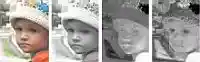 А вот теперь настала пора принять по-настоящему крутые меры по сокращению данных в нашем изображении. Дело в том, что все наши предыдущие действия подготовили для этого самую благодатную почву. Настала пора избавиться от солидной части информации, но так, чтобы это не было сильно заметно для глаза. Для этого рассмотрим полученные нами группы коэффициентов. Они достаточно точно описывают изменения изображения. Мы же можем многие из сходных коэффициентов округлить до одинаковых значений. Округлить можно слабо — например, 7;6;9;7 заменить на 7;7;7;7, а можно и сильно — например, 4;60;12;40;12 заменить на 25;25;25;25;25. Именно округлением коэффициентов вы руководите, когда указываете в Фотошопе степень качества при сохранении в JPEG. Специалисты называют этот этап квантованием. Нетрудно заметить, что такие округления приводят к потере четкости и размазыванию изображения. Поэтому эксперты разработали специальные правила округления для различных степеней сжатия. Их основной смысл в том, чтобы округлять информацию в каналах цвета гораздо сильнее, чем в канале яркости. Как это происходит, видно на Рис. 6—9. Исходное изображение было сохранено Фотошопом с установкой «хорошее качество». При этом четкость в канале яркости практически не изменилась, а вот цветовые каналы сильно упростились, мелкие детали проигнорировались. Стали заметны границы пиксельных групп, но благодаря особенностям нашего зрения эти дефекты остались незаметными на итоговом изображении.