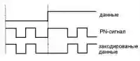 Чипы получают в результате умножения узкополосного сигнала данных на широкополосный шумоподобный (PN — pseudonoise) сигнал. При этом бит 0 заменяется на несколько бит PN-сигнала, а бит 1 — на несколько бит инвертированного шумоподобного сигнала (рис. 1). Высокая избыточность передаваемых данных позволяет понизить мощность передачи сигнала и принимать его, даже когда уровень сигнала ниже уровня шума.