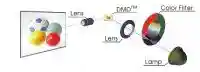 И вот после вышесказанного обязательно следует уточнить, что ограничение по количеству цветов у DLP-девайсов налагается электроникой проектора. Дело в том, что система DMD, управляемая по принципу широтно-импульсной модуляции, не имеет ограничений (по крайней мере, разумных :-)) по количеству бит на цвет. Кроме того, поскольку зеркальные матрицы DMD являются монохромными (одноцветными), они не имеют смещения цветов. И в общем цветовое качество проецируемого изображения может довольно тонко настраиваться с помощью цветовых фильтров и оптики.