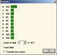 удельное число цифр (частота появления) в числе 1000! примерно одинакова (см. диаграмму на Рис. 3).