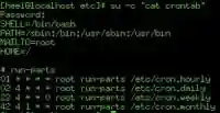 Думаю, следует напомнить, что демон — это программа, которая запускается сценарием при загрузке Linux. В нашем случае это демон cron, который запускается из /etc/rc.d/init.d. Программа crond выполняется в фоновом режиме и проверяет ряд файлов. Первый из них —crontab в каталоге /etc. Часть содержимого каталога /etc видна на Рис. 1, фрагмент файла crontab — на Рис. 2 (скоро он у вас будет выглядеть совсем иначе). Как видите, это список команд, выполняющихся ежечасно, ежедневно, еженедельно и ежемесячно. Команда cronloop — сценарий оболочки; он выполняет поиск в каталоге /etc/cron.d, а затем запускает назначенные задачи согласно содержимому файлов, найденных в подкаталогах Monthly, Weekly, Daily и Hourly каталога /etc/cron.d. Действительный сценарий оболочки находится в подкаталоге lib каталога /etc/cron.d.