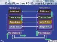 Модель PCI Express представлена пятиуровневым вариантом, состоящим из программного уровня, уровня транзакций, соединений, физического и механического уровня (рис. 2). Данные, которые необходимо передать, определяются на программном уровне, на остальных (транзакционном, соединений и физическом) формируется пакет для передачи данных через физическое соединение. Каждый из трех уровней, отвечающих за формирование пакета, добавляет к нему необходимую служебную информацию. После того, как пакет сформирован, он направляется другому устройству, которое извлекает из него данные и передает их на программный уровень для соответствующей обработки.