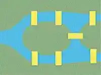 На рисунке отчетливо видны все 4 части города зеленого цвета, речка и 7 мостов желтого цвета. В виде графа город можно представить следующим образом:
