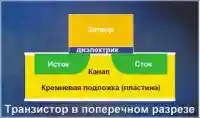 **Затвор —**область в верхней части транзистора, состояние которой определяет, включен транзистор или выключен. Затвор изготавливается из поликристаллического кремния, в котором атомы расположены случайным образом, а не выстроены по типу пространственной решетки.