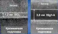 Стало быть, перед разработчиками микропроцессорной техники встала задача по замене диоксида кремния иными материалами, обладающими теми же изолирующими свойствами, но использование которых не потребует достижения очень низкой толщины диэлектрического слоя.